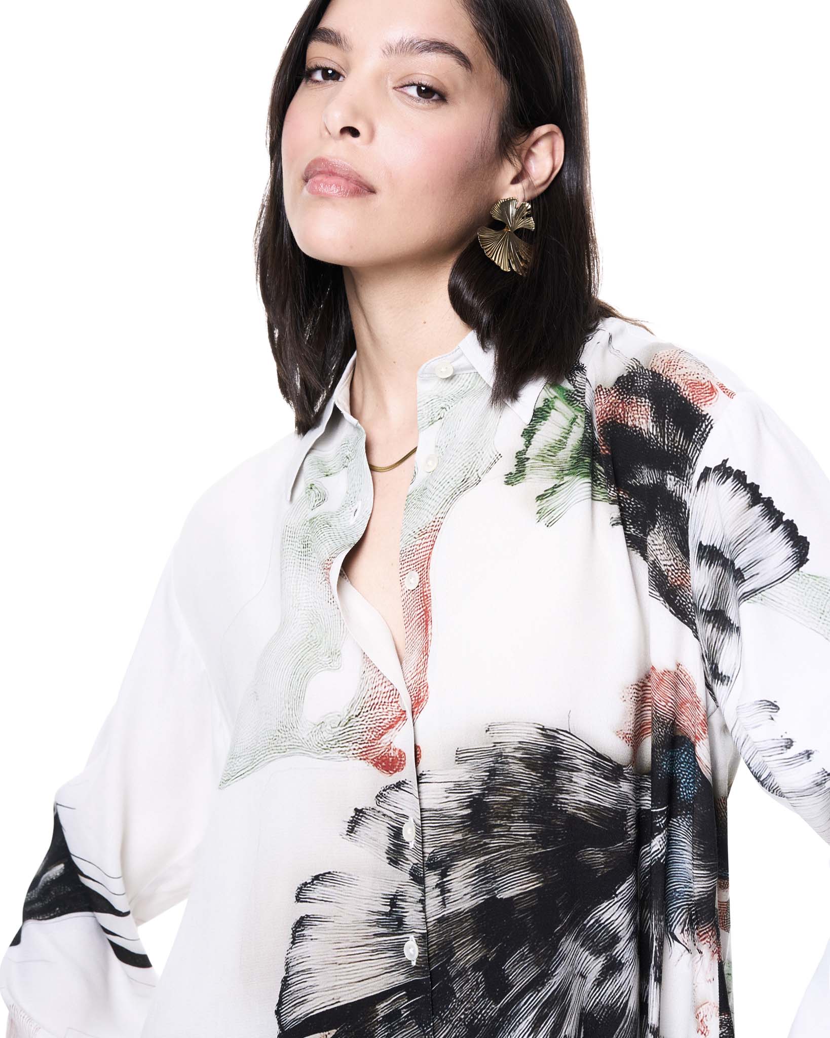 THE KIT's Annie Shirt is a luxurious, oversized button-front shirt with tailored back shoulder yoke and inverted pleat for additional fullness. Order true size for look similar to the one on the model.